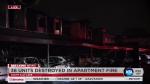 The fire spread from the cars to the three-story, 24-unit apartment building. Twelve units were considered a total loss and 12 suffered smoke and water damage, the chief said. The building was not open to occupancy Thursday, through some tenants were allowed to retrieve personal items out of the units by the afternoon. The American Red Cross was on scene to help the estimated 40 displaced residents.