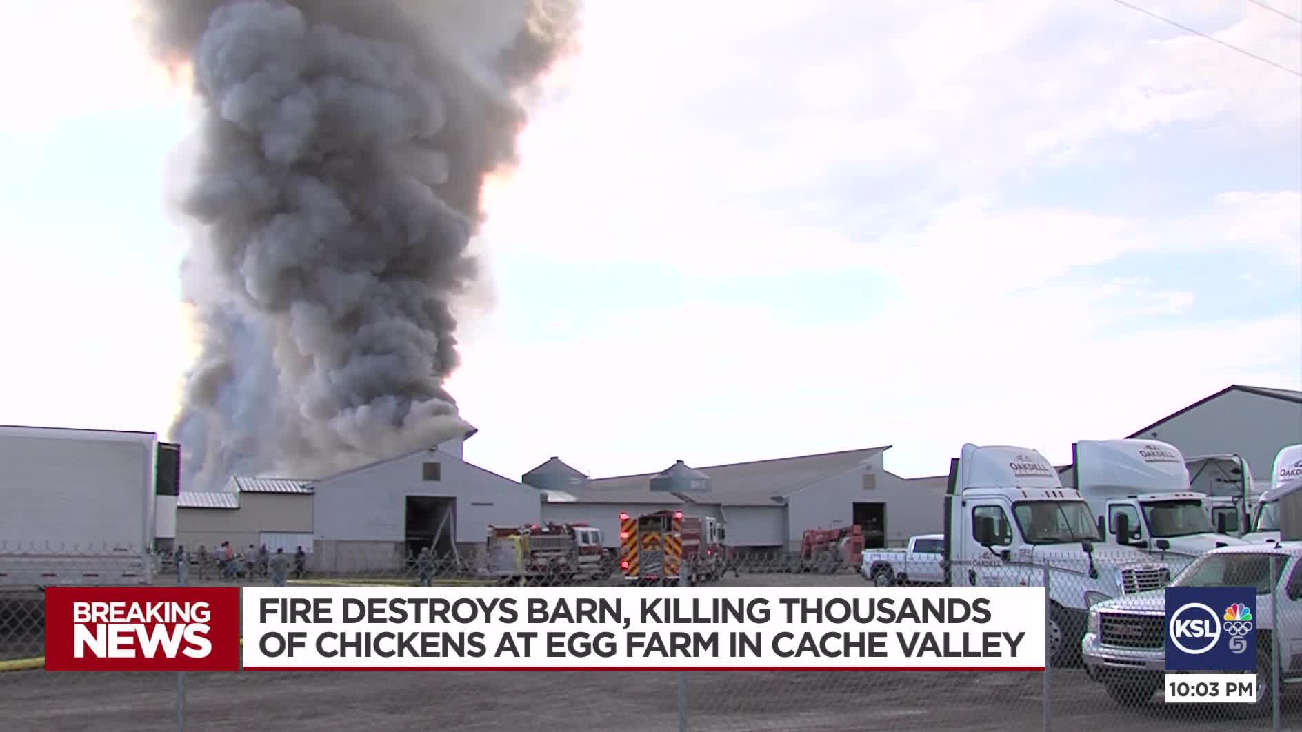 LEWISTON, Cache County — A barn at a large commercial egg farm in Cache County burned down Tuesday evening, killing thousands of chickens.