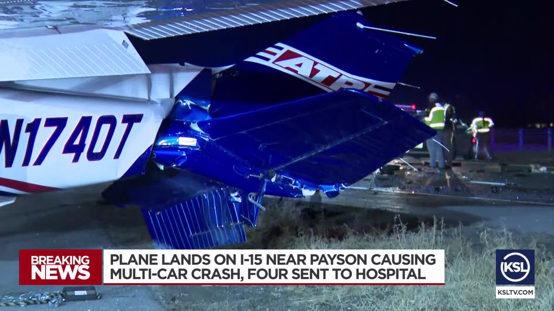 Utah Highway Patrol said the plane experienced mechanical failure causing an engine to quit about 8:11 p.m. The pilot and student pilot in the small plane successfully landed on the freeway, where it was blocking the right lane. Multiple cars came to a stop in the lane behind it.