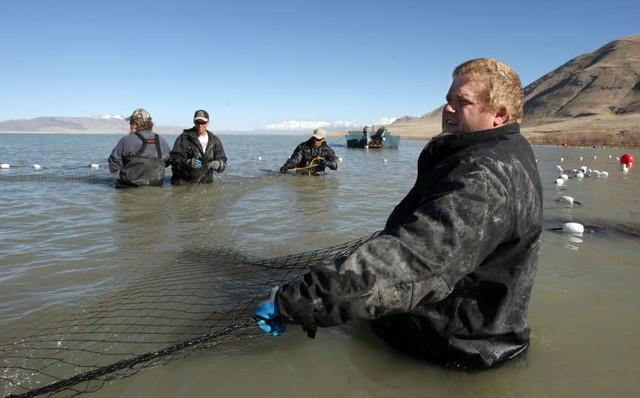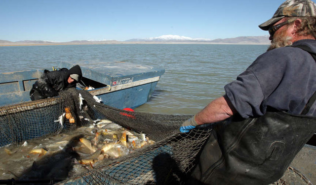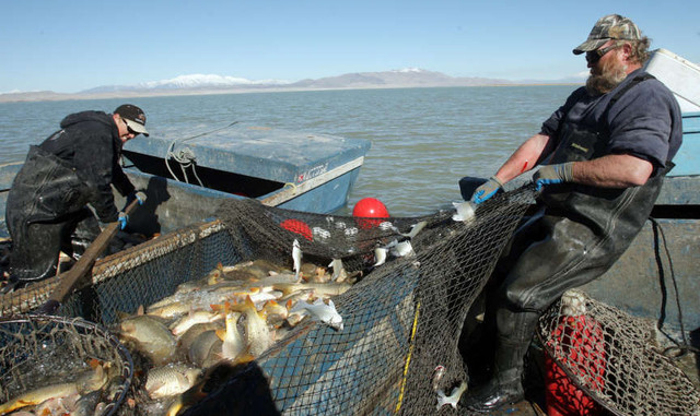 GOSHEN BAY — Commercial fishermen in a small fleet of custom-built boats are plugging away at an unfathomable task: removing 40 million pounds of carp from Utah Lake.