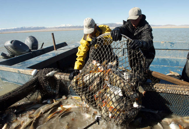 Loy gets 20 cents for each pound of carp he pulls from the lake. His fishermen have had their hands on seven million pounds of carp since the removal initiative began almost two years ago as part of the June Sucker Recovery Implementation Program.