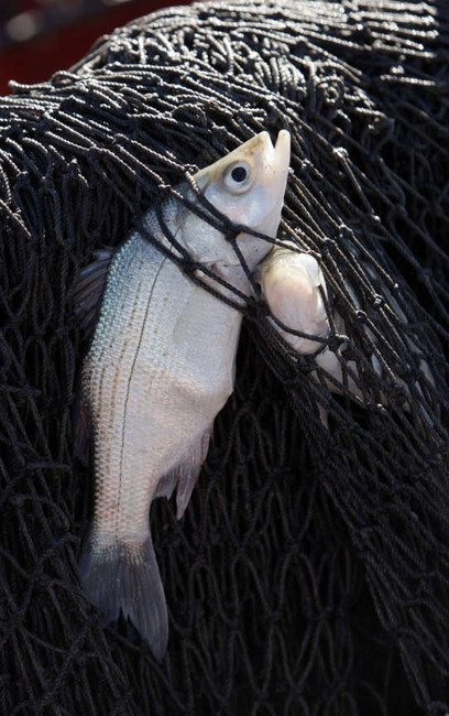Daily they take a fishing net the length of three football fields, trap more than 3,500 carp and scoop them into one of their flat-bottomed boats until it is almost swamped. They pull the boat close to the shore and use a motorized conveyor to load the fish into a massive trailer. From there the fish are mostly used for compost.