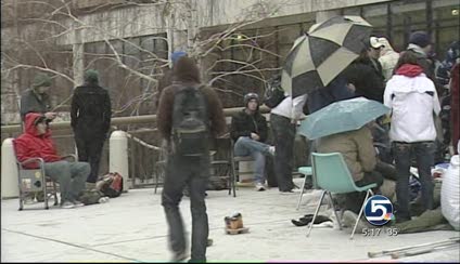 The university told students not to line up until noon Tuesday, but students like Trent Boulter have been staking their spot in line for days and even camped out since 3 a.m. Tuesday.