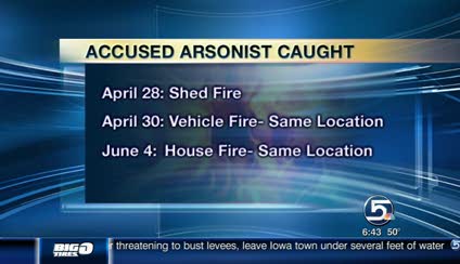 A third fire occurred June 4 at the same location, this time involving a home. Investigators were able to determine the cause of the fire and Shawn Christensen was arrested.