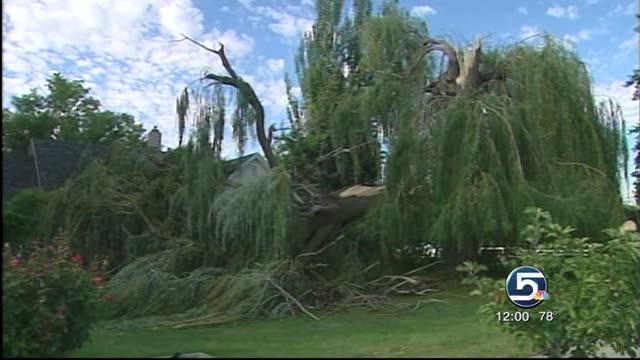 SYRACUSE -- The skies along the Wasatch Front were lit with a lightning spectacle Sunday night, causing power outages in some areas, and wind damage in others. And now neighbors are left cleaning up the mess.