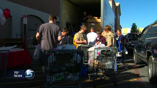 Boy Scout Hunter Kjar, who was also dropping off a donation, said it's important "to give food to those who don't have it." He said it was nice to be able to help.