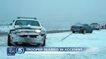 FISHLAKE NATIONAL FOREST — A Utah Highway Patrol trooper suffered minor injuries Friday while investigating a crash on I-70.