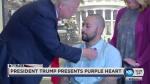 Trump kissed Barrientos' wife before pinning the medal on the sergeant's left shirt collar, grasping Barrientos by the shoulders and then shaking his hand. The Purple Heart is awarded to service members who are wounded or killed in action.