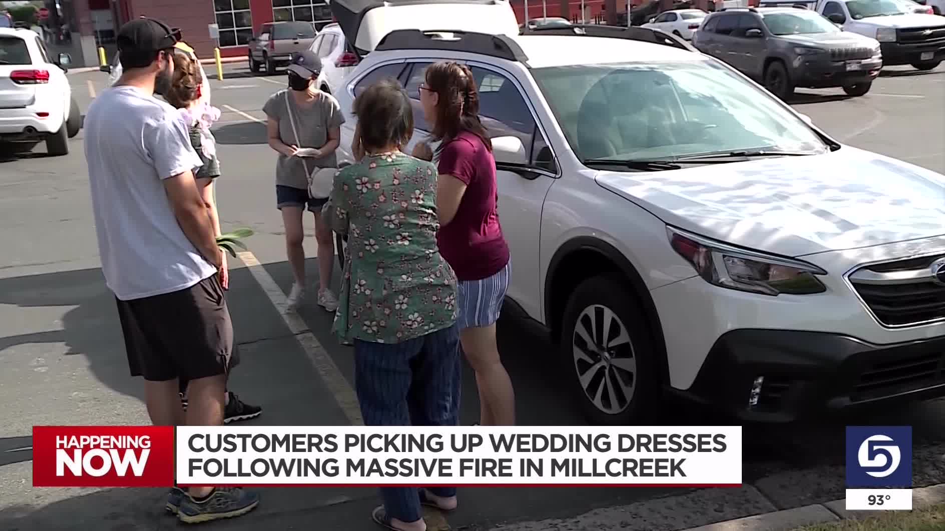 She was back at her shop on Monday to get some dresses out of the building. She reunited the brides with their dresses Wednesday in a parking lot across the street from the fire.