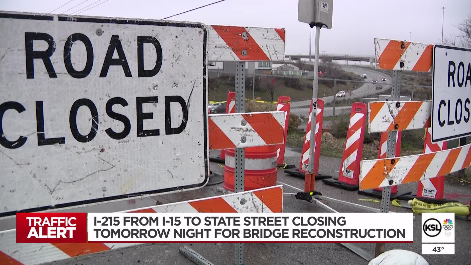 The closure begins Friday at 9 p.m. All eastbound I-215 traffic must exit at I-15 and follow the posted detour through 7200 South and State Street. During construction, traffic on the bridge will be fully restricted. Pedestrian access on the bridge will also be prohibited.
