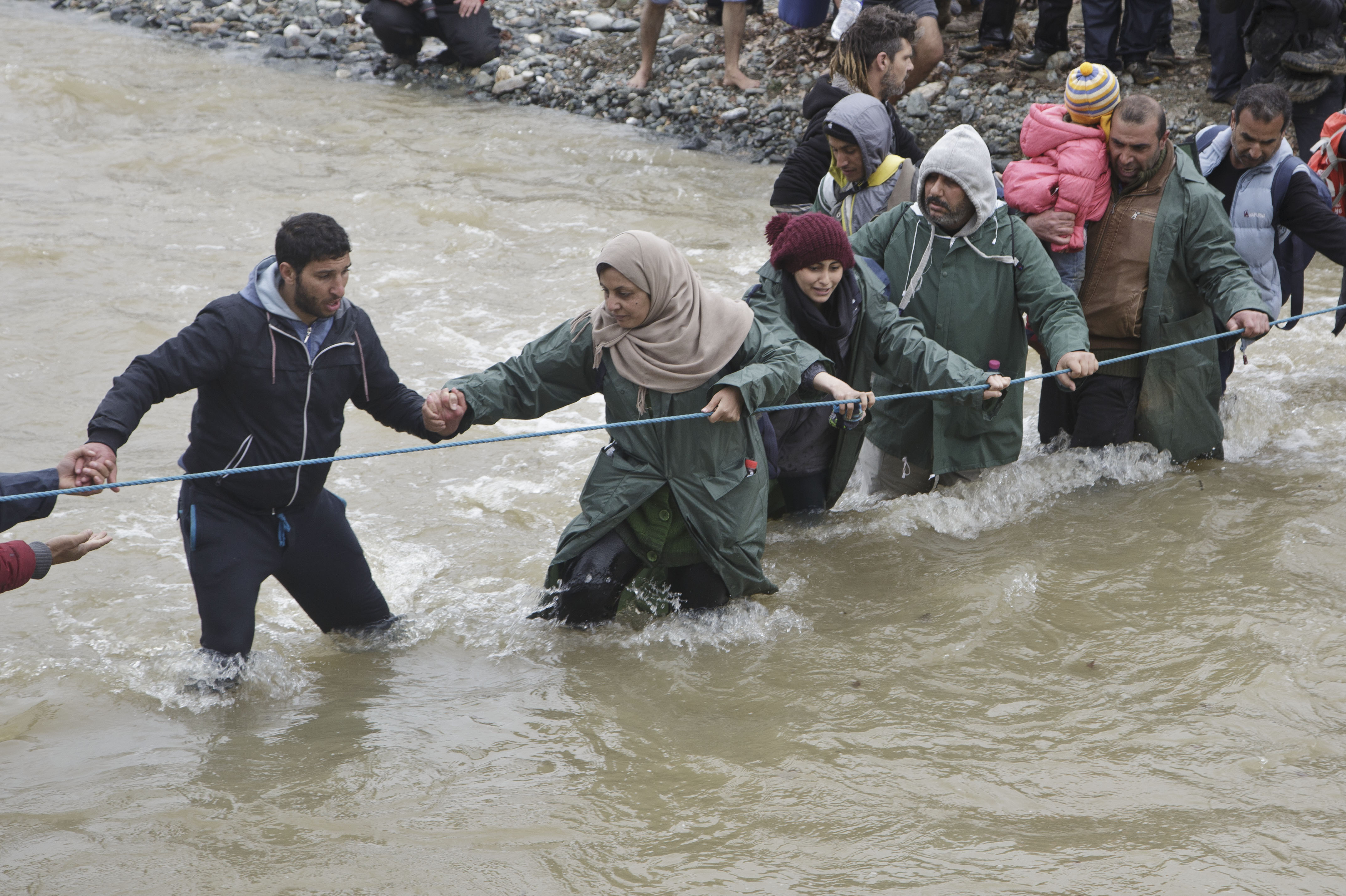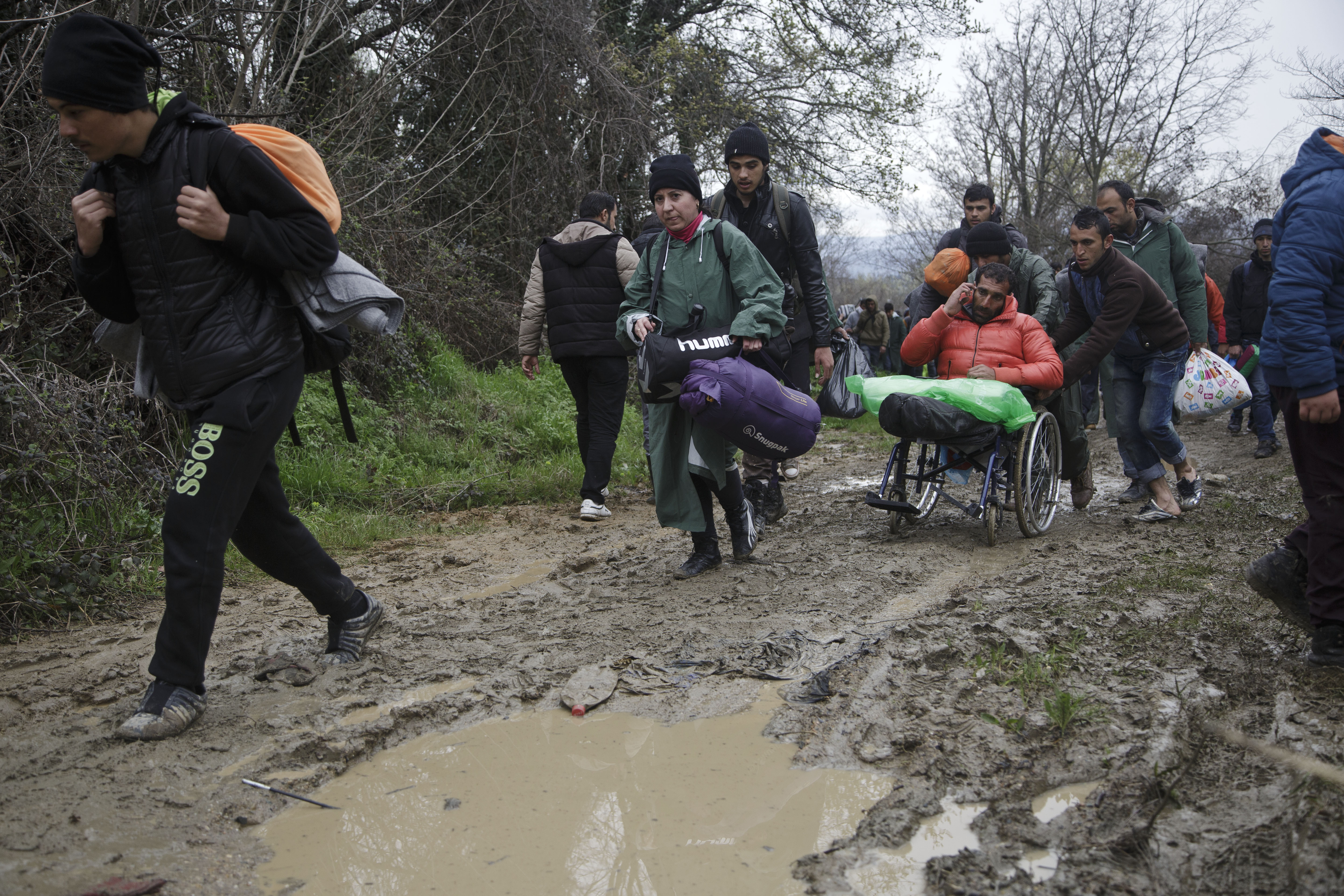 About 700 people pushed their way into Macedonia Monday through an unguarded section of the border, frustrated at being stuck for weeks in a waterlogged tent city outside the closed crossing of Idomeni. More than 1,000 men, women and children are believed to have entered Macedonia after walking about 5 kilometers (3 miles) across country, and fording a swollen stream near the Greek village of Hamilo.