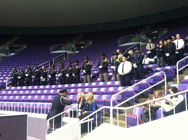 Before the funeral began, however, police officers seated on the main floor of the arena could be seen passing an iPad around. Ogden police officer Michael Rounkles reportedly watched the funeral from his hospital room with his own iPad. Hospital spokesman Chris Dallin, while not confirming whether Rounkles was able to watch the proceedings on an iPad, noted, "We made every attempt to get the information to the patients. We were trying to link that up."