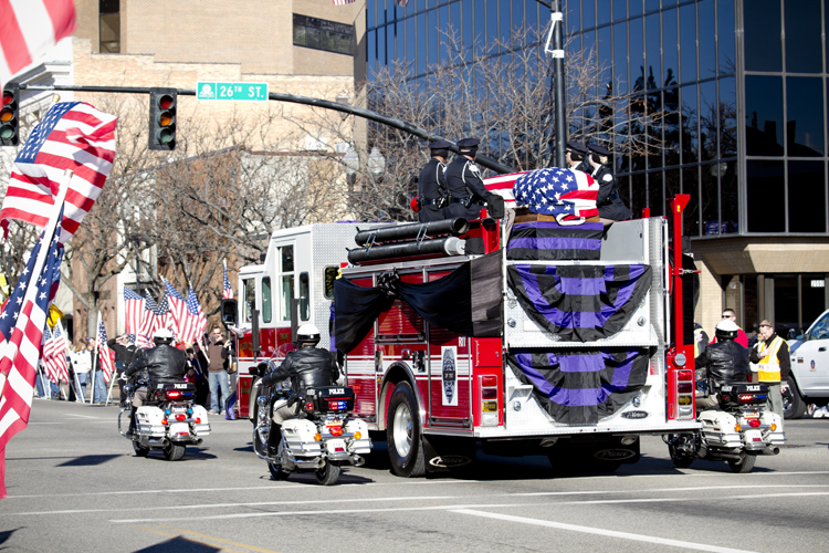 Officers from across Utah and the western United States began arriving at the Dee Events Center as early as 7 a.m. Members of local Boy Scout troops were up just as early setting up thousands of American flags along the procession route.