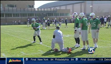 PROVO -- It was a busy day in Cougartown Monday, as BYU head football coach Bronco Mendenhall kicked off his spring football camp. For the first time in three years, the coach is looking for a starting quarterback.