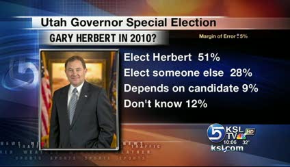 SALT LAKE CITY -- A new poll suggests Utah voters will cast their ballots for Gov. Gary Herbert in a special election next year that would allow him to finish out former Gov. John Huntsman Jr.'s term.