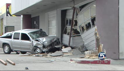 Police say the man was driving near 3700 West and 5400 South around 7 a.m. when his truck veered off the road and slammed into the bay doors of a vacant auto shop.