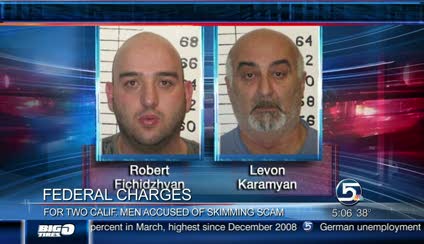 A technician servicing pumps at two convenience stores in Richfield found eight electronic skimmers two weeks ago and called police. Officers arrested Karamyn and Fichidzyan when they returned to the pumps, allegedly to gather the information.