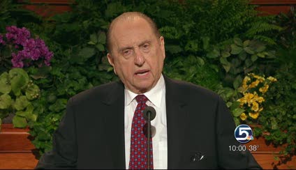 In Saturday night's meeting for the men and boys of the faith, the priesthood session, Pres. Monson addressed the young men, stressing honesty, clean language and physical self-control. He warned them to be careful what they read, listen to or watch.