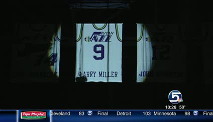 Miller's family and former Utah players, including John Stockton, were on the court for the ceremony and a few fans chanted "Larry Mill-er!" as the teams warmed up for the second half.