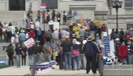Around noon, the rally moved from the Bennett Federal building downtown up State Street to the grounds of the State Capitol. There, an even larger crowd gathered. Still a feeling of more worry -- and more anger -- against government status quo was there.