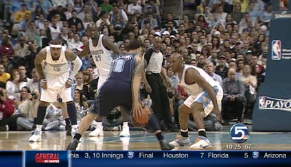 Despite the consistent whistles heard throughout the Pepsi Center, Carmelo Anthony was the only man to hit the six-foul mark, and didn't achieve his final notch until just 25.4 seconds were left on the clock. Anthony tallied 32 points for the Nuggets, but Utah head coach Jerry Sloan said he was happy with the way the Jazz defended the small forward as he hit just 9-of-25 from the field.