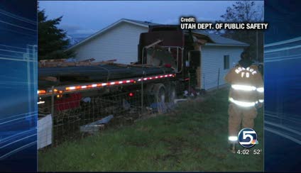 The Utah Highway Patrol says the truck was turning off Interstate 70 to go south on U.S. 89 Wednesday night, when it drifted into the opposite lane and hit a street light. The impact sent the semi off the road, down an embankment and through a fence.