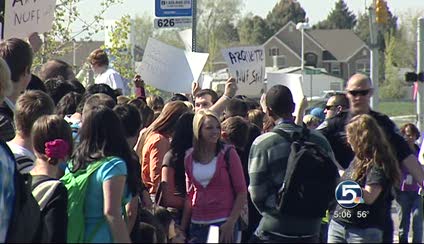 SYRACUSE -- As teacher and program cuts loom in the Davis School District, students walked out at Syracuse High School in protest. They weren't sure what they would accomplish, but they wanted to do something to express their anger and get the community involved.
