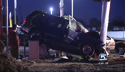 Police say the vehicle was traveling eastbound on 9000 South around 8:45 Sunday night. It was going 10 miles over the speed limit when the driver lost control at Monroe Street (150 West). The vehicle veered onto the sidewalk and then hit a construction ditch.