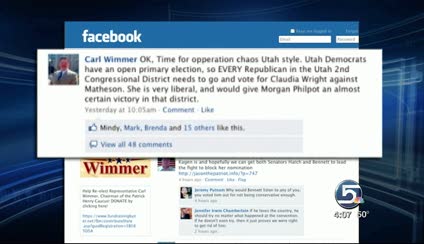 KSL first reported Monday night about an activist pushing for Republicans to vote in the Democratic primary. Activist Chase Everton launched a social networking campaign to urge conservatives to skip the Republican primary and vote for incumbent Jim Matheson's opponent Claudia Wright.