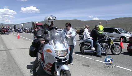 Nearly 300 motorcycles were traveling in the charity ride. The Utah Highway Patrol says one bike was following too closely and collided with another one when it slowed down. None of the three motorcycle riders involved was wearing a helmet; all three were injured.
