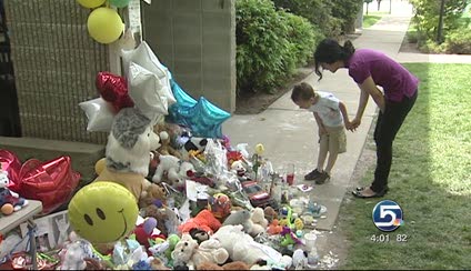 Back at the Layton Meadows apartment complex, what started as a few flowers and stuffed animals now spreads across the sidewalk and up to the Sloop's apartment, the place Stephanie told police Ethan died. Neighbors have started to pack away the hundreds of toys, flowers and balloons for Ethan's father, Joe Stacy, who lives in Virginia.