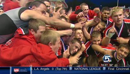 With the match tied at 17, United took a five-point lead on a try by Brian Mehl. With two seconds left, Highland would get the ball inside the 5-yard line. But the United defense held strong, and the team finally defeated Highland to claim its first national championship.