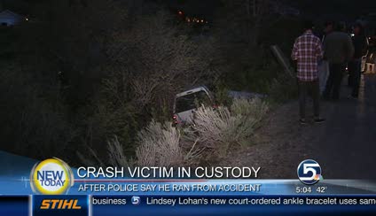 Several people saw the driver climb out of the small ravine. They tried to persuade him to stay, but police say he fled. About two hours later, officers spotted him on the road trying to flag down a car.