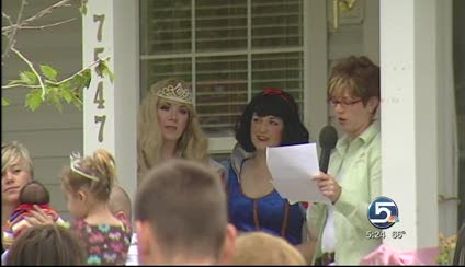 EAGLE MOUNTAIN -- A very special 5-year-old arrived home in Eagle Mountain to a very special surprise Tuesday: princesses on the porch! Those princesses brought with them a fully furnished home for Samantha Clark and her family.