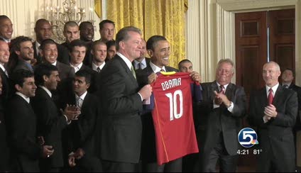 "It is because of the efforts of Robbie and the rest of the folks here today that soccer continues to get more popular every year in the United States, and as the father of soccer playing daughters I can tell you it shows no signs of slowing down," said Obama
