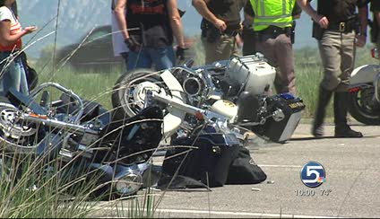 Sgt. Sheldon Riches with the Utah Highway Patrol says the officer was with other law enforcement leading the pack of riders participating in the 59th annual "Ride for a Cure" for the Muscular Dystrophy Association.