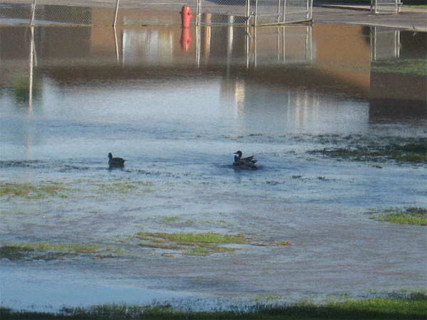 Where Little Cottonwood Creek roars through the Fort Union area, it peeled the patio off of the vacant Black Angus restaurant.