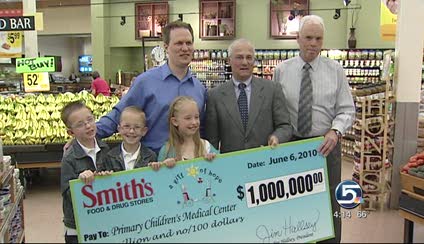 Smith's Food and Drug Stores handed over a $1 million check to the hospital after a local fundraising campaign.