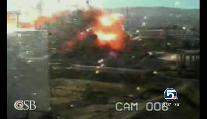 The blast knocked four workers to the ground and left about 100 houses in a nearby subdivision damaged -- it peeled the homes' siding, smashed windows or bent garage doors. One house was knocked off its foundation.