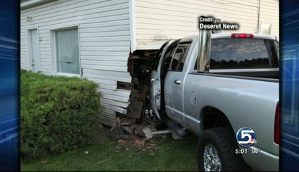 Andrew and Lauren Brown, who lived in the house near 550 North and 2000 West, had just gotten into bed for the evening when the truck smashed through their bedroom wall and came to a stop about four feet into the room.