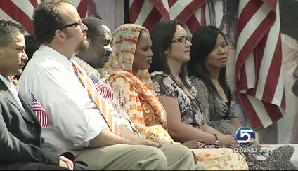 The ceremony at Scera Park was part of the U.S. Citizenship and Immigration Services annual celebration of Independence Day. An estimated 3,800 candidates will become citizens at 55 special ceremonies held across the country and around the world from July 1 through July 6.