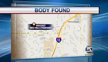 The body was found around 10 p.m. about 75 feet off Red Hills Parkway near 450 East. The undeveloped area is located at the bottom of a 100-foot cliff.