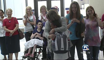 With red, white and blue everywhere, the extended family waited at Salt Lake International Airport Sunday to finally meet their new family members. It's taken two long years to get Bill and Jenny to Utah.
