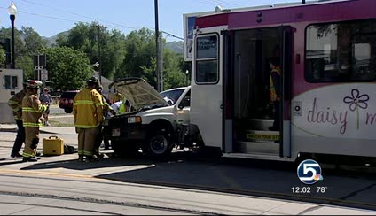 Witnesses say the woman was in the SUV parked on the side of the road near 200 West and 900 South around 10 a.m. They say she pulled into traffic and tried to make a U-turn in front of the train.