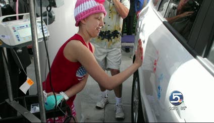 SALT LAKE CITY -- Patients at Primary Children's Medical Center stepped away from their hospital beds Thursday to make a mess of a new car.