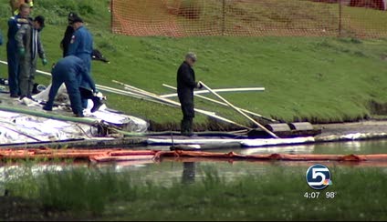 Much of the crude oil pooled into a pond at the city's Liberty Park and regulators say oil traveled downstream into the Jordan River.
