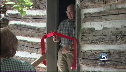 Hall cut the ribbon for the exhibit of the cabins. One was built back in 1867, the other in 1880.