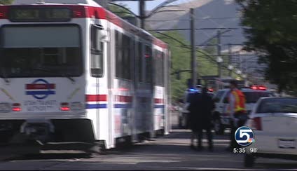 UTA spokesman Gerry Carpenter says the train was approaching the 900 South station near 200 West around 8:15 a.m. when a middle-aged man darted out and slammed right into it. The man hit the side of the train near the front.