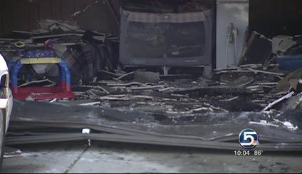 Fire officials say the garage was ablaze when crews arrived at the home near 1000 West and 1500 South around 12:45 p.m. Two men were trying to put out the flames with garden hoses, but fire officials pulled them back and quickly doused the fire themselves.