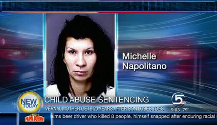 Napolitano was arrested for not seeking medical treatment for serious injuries to the boy's feet, which eventually required amputation of his toes. Investigators described his wounds similar to those seen on a "severe burn victim with open blisters and bleeding sores."